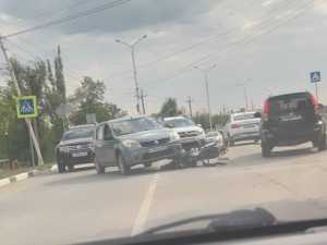 В городе Красный Сулин на улице Фурманова произошел дорожный инцидент, в результате которого автомобиль сбил мотоциклиста. Это случилось около 16 часов 6 мая. На фотографиях с места происшествия видно, что серебристый «Рено Логан» передним колесом наехал на лежащий на дороге мотоцикл.