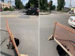 В администрации города Шахты прокомментировали, что выставили ограждение вокруг опасной ямы, чтобы избежать ДТП. Интересно, что ранее неподалеку от провала проводили работы по замене водовода.
